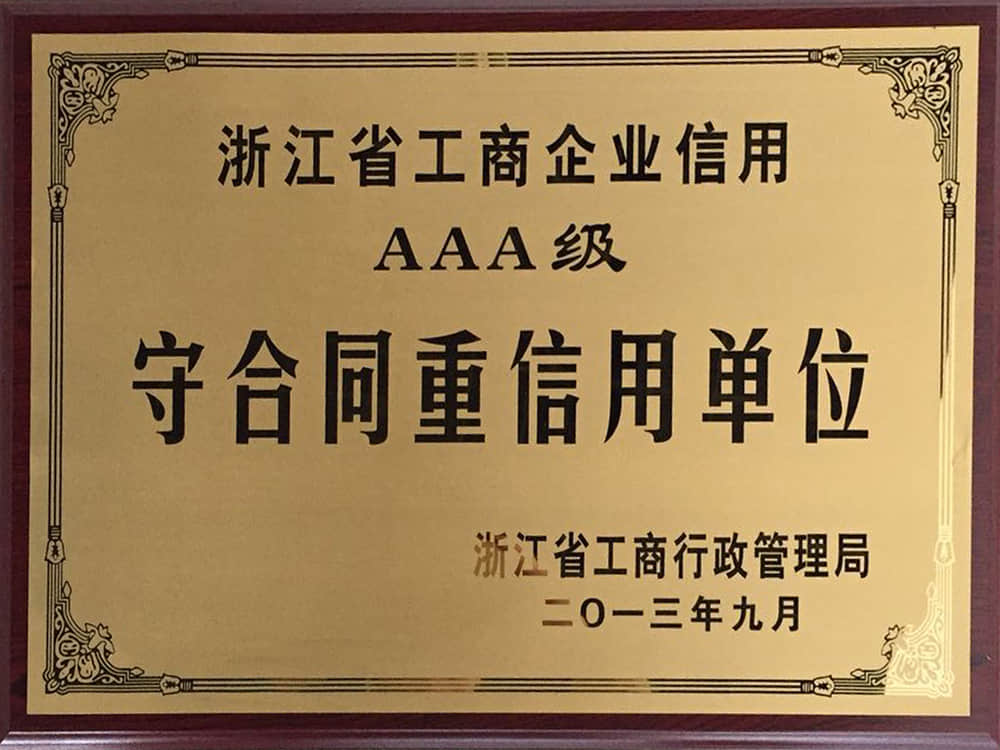 • 2013浙江省工商企業(yè)信用AAA級(jí)守合同重信用企業(yè)