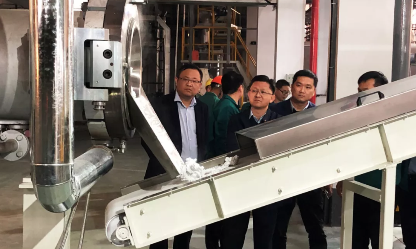 2019年11月21日,尤夫股份聯(lián)席總裁翁中華、化纖總經(jīng)理王尤輝在銷售總監(jiān)李敬之的陪同下,深入天花膜事業(yè)部,調(diào)研指導(dǎo)試機工作。